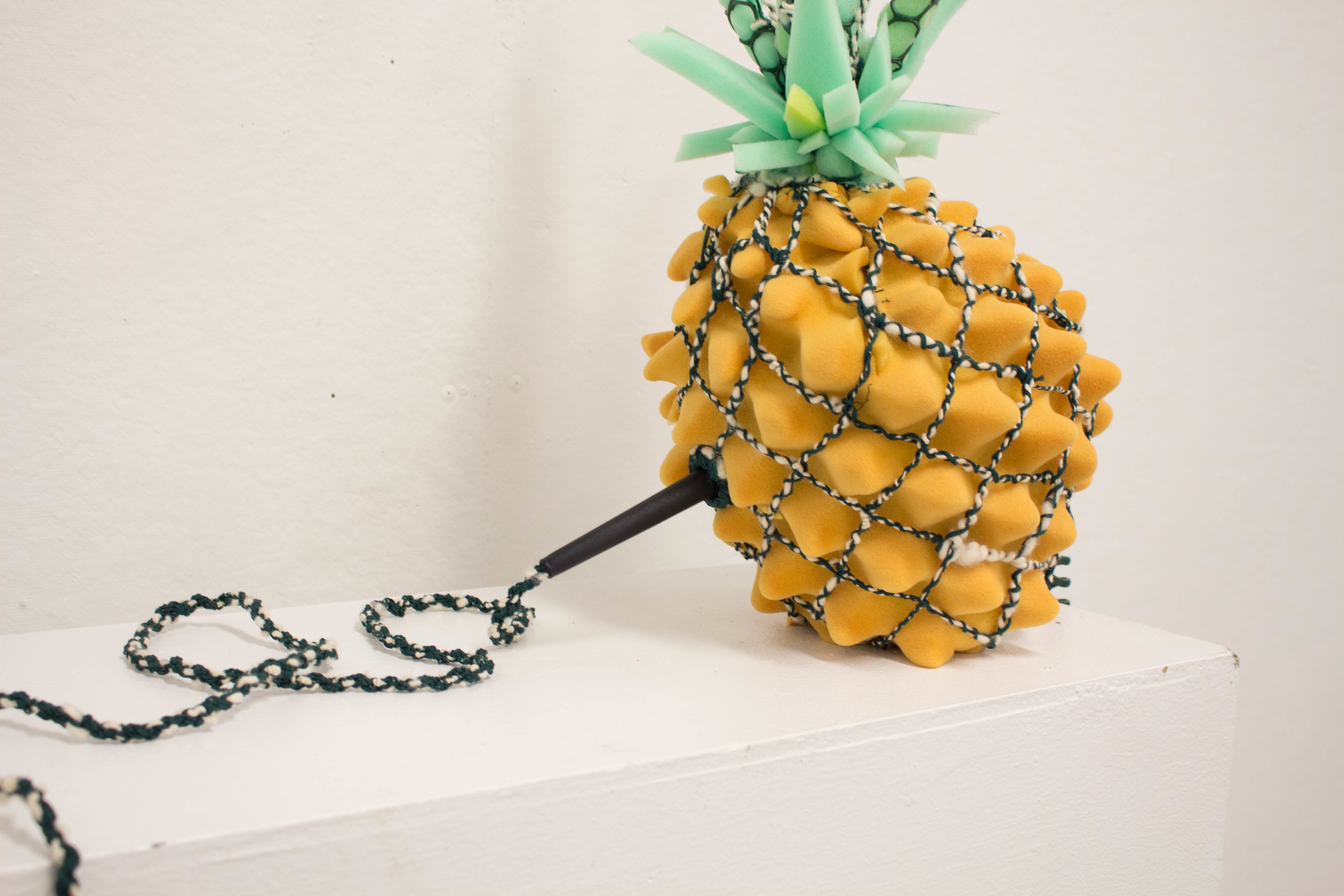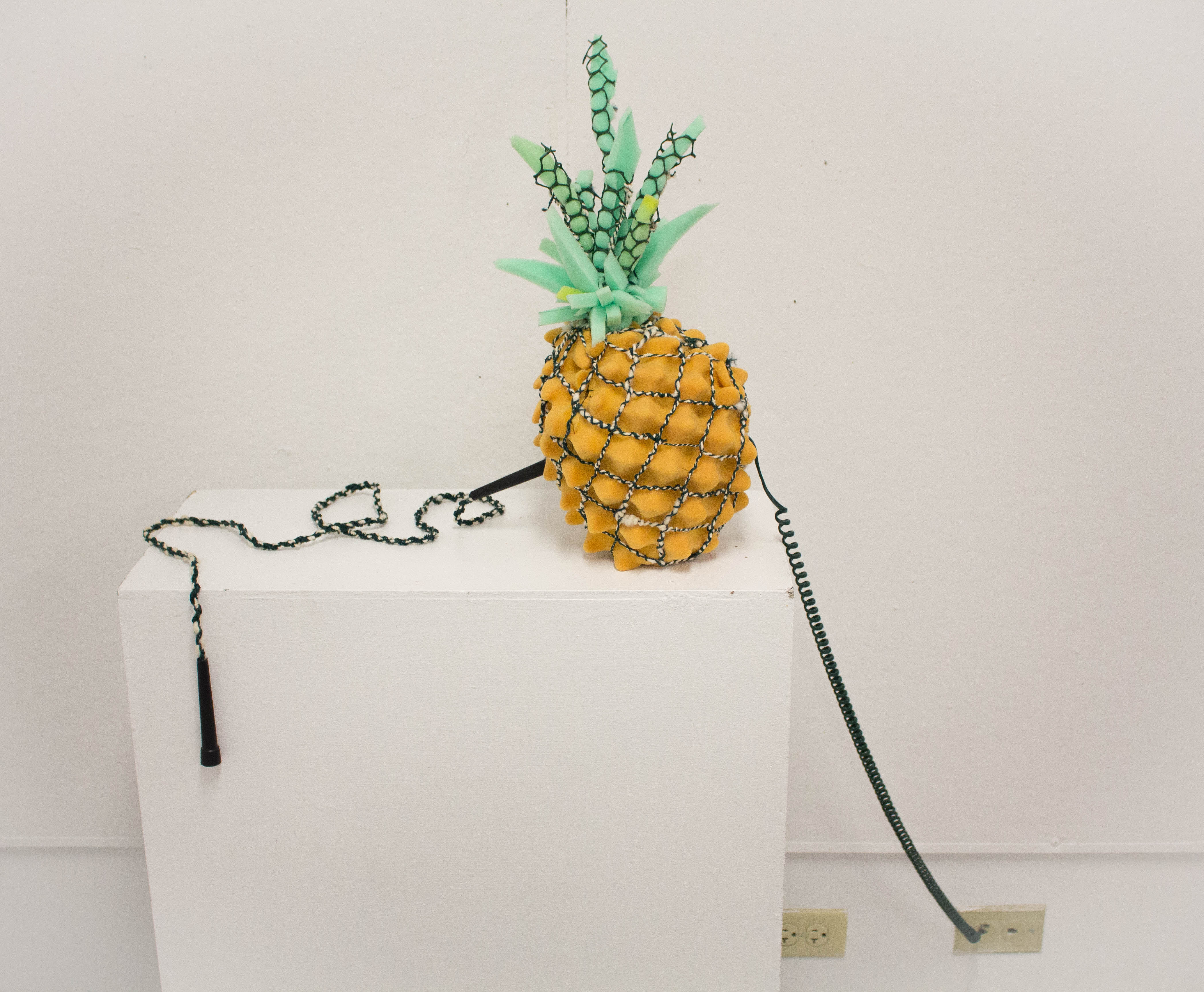 hand-spun jump rope, egg crate foam, plastic fencing, telephone cord, outlet + jack
